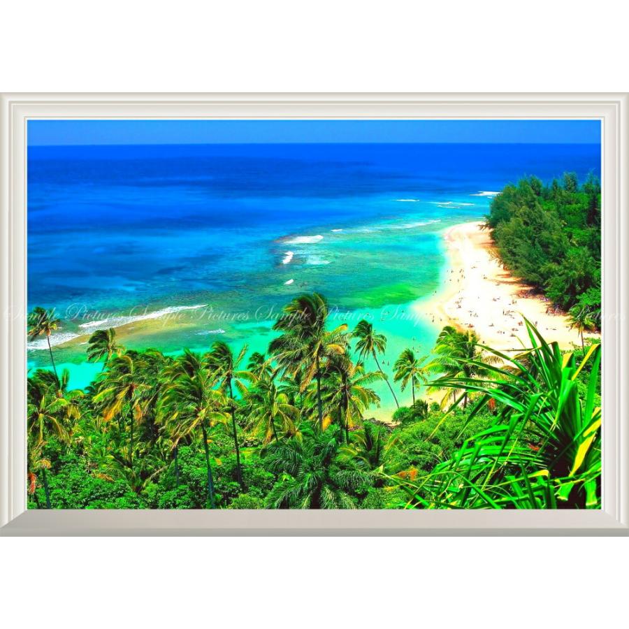安い 絵画風 壁紙ポスター 窓の景色 ハワイ マウイ島 ビーチ ヤシの木 砂浜 海 扉なし窓仕様 キャラクロ Hwi 013na2 版 594mm 4mm Cisama Sc Gov Br